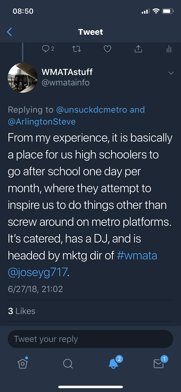 "Another WMATA lifer. They built a team based on personal friendships, not by actual talent. Consistently he and his team are being investigated for sexual harassment and inappropriate behavior. This is why people from the outside do not stay. They are targeted and hazed by the existing folks. They see that the managers are not held accountable."